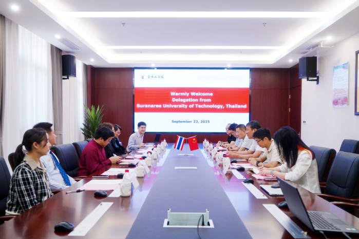 苍玉权对Benjiwan Rodjanadid一行的到访表示热烈欢迎,介绍了学校的办学历史、办学规模、办学特色、学科和专业建设情况等,提出推动两校师生交流,联合参加国际学科赛事和研究生联合培养等建议。Benjiwan Rodjanadid介绍了学校和学院的发展历史、办学规模、学科专业、科研方向等,希望两校齐心并力,更好地推进中泰两国师生在教育、科研、文化等方面的交流。金中坤介绍了我校国际交流与合作的情况。两校职能部门和二级学院代表进一步讨论了未来合作的具体项目和推进时间表。